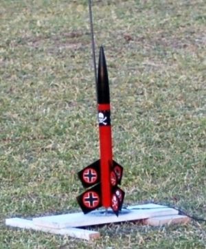 This is a two-staged downscale of the venerable Estes classic Der Red Max.