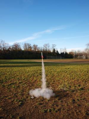 Perfect flight, but I'd pinched the shock cord next to the body tube when I inserted the nose cone. Motor mount blew out the back of the rocket on recovery. Easy fix, but it makes me wonder about the white glue I used.