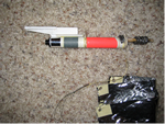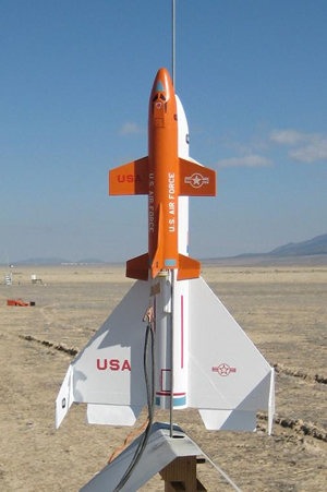 The booster had a bright red color. The Semroc directions show a yellow orbiter on top of a white booster, which is probably consistent with the original Centuri configuration. I was taken to making an orange orbiter, probably from my recollection of seeing some Bell X-1 models painted orange. I used the old Rustoleum rust colored primer, which was very difficult to cover with the new Krylon gloss pumpkin orange that came out about a year ago.