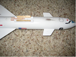 Especially, follow Step 10, which states that the pieces must be within 1/16” of the specified locations. Later, after painting I found that I had to sand and trim some of theses parts with an X-acto knife to make them fit properly. I put a small silver mylar adhesive strip on the aft motor mount tube under the engine hook. This should be done just before Step 18.