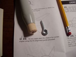 The included screw eye used to attach the shock cord to the nose cone was unusually big. It is almost as wide as the body tube inside diameter. I guess it is to help move the CG forward. When I installed it I didn't pay attention to the instructions and just screwed it in. I heard the beginnings of a slight, but subtle crack. I backed it out, put some glue in and screwed it back in. The instructions say to use a 1/8" drill bit to open the hole first. I shouldn't have overlooked that part, but I think it is OK.