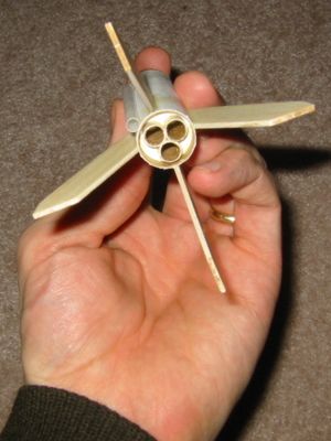 This rocket combines the Fliskits 3 Micromaxx motor cluster and the Semroc Triton rocket. The cluster component fits the BT-20 body tube of the Triton perfectly. The Triton was built so that it could recover with the use of a streamer.