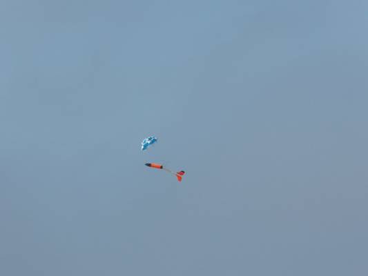 payload section snapped back onto the tube, but the chute managed to deploy. One broken booster fin.