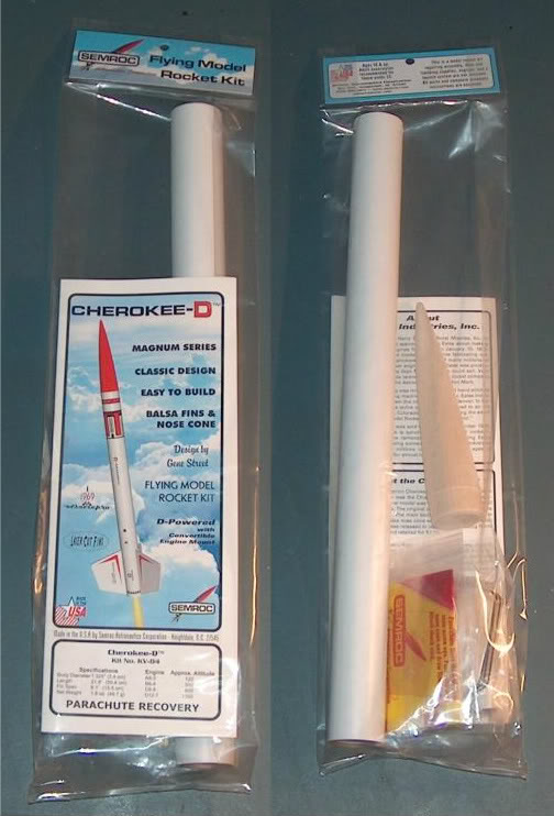 Semroc makes a great kit. The kit has a 24mm motor mount for D-engines but also includes an 18mm converter so you can fly it with lower power engines. The nice thing about this is that the 18mm mount can just be inserted for flights with smaller engines and then removed; it does not get glued in. There are decals so I will have to see how they work out, I have not had a Semroc kit with decals yet. The other things that stands out are that the motor mount adaptor rings for the 24mm mount are fiber rings, not cardboard and the assembly instructions and parts list are 3-hole punched so if you like to save them in a binder they are ready to go.