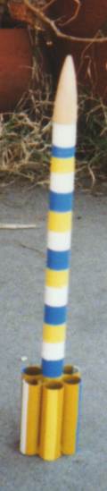 Description: Single staged, 18mm motor rocket with tubular stabilizers all around instead of fins. Streamer recovery.