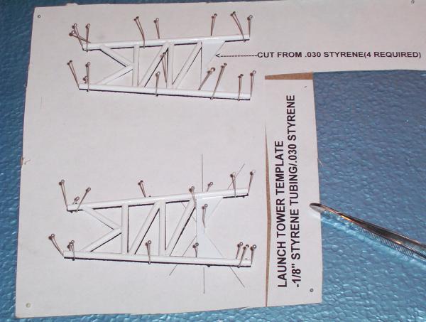 The capsule and escape tower are almost literally made from scratch. For the capsule, a cone is made from the 0.030" styrene sheet with a hardwood piece for the very tip. The base is one of the (provided) centering rings, and the coupler is made out of a piece cut from the main body tube. Of course, the real fun is building the escape tower out of the 1/8" styrene tubing and some 0.010" styrene sheet. The launch escape motor is made from the 7/8" hardwood dowel, which you need to carve/sand to a point on one end. The shroud at the bottom of the escape motor is made up of more 0.030" styrene sheet. The instructions and templates provided are good and the end result came out nice but be prepared for a time consuming build.