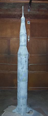 As noted previously, I pre-finished the body tubes before starting assembly. But this thing is big. Really big. It takes a lot of priming, sanding, and painting to paint. In fact, I went through more than three 12oz cans of automotive primer and another three plus 12oz cans of Krylon color while painting this Saturn. I did make things a little simpler by painting the main rocket before adding the detail parts, which I'd painted separately.