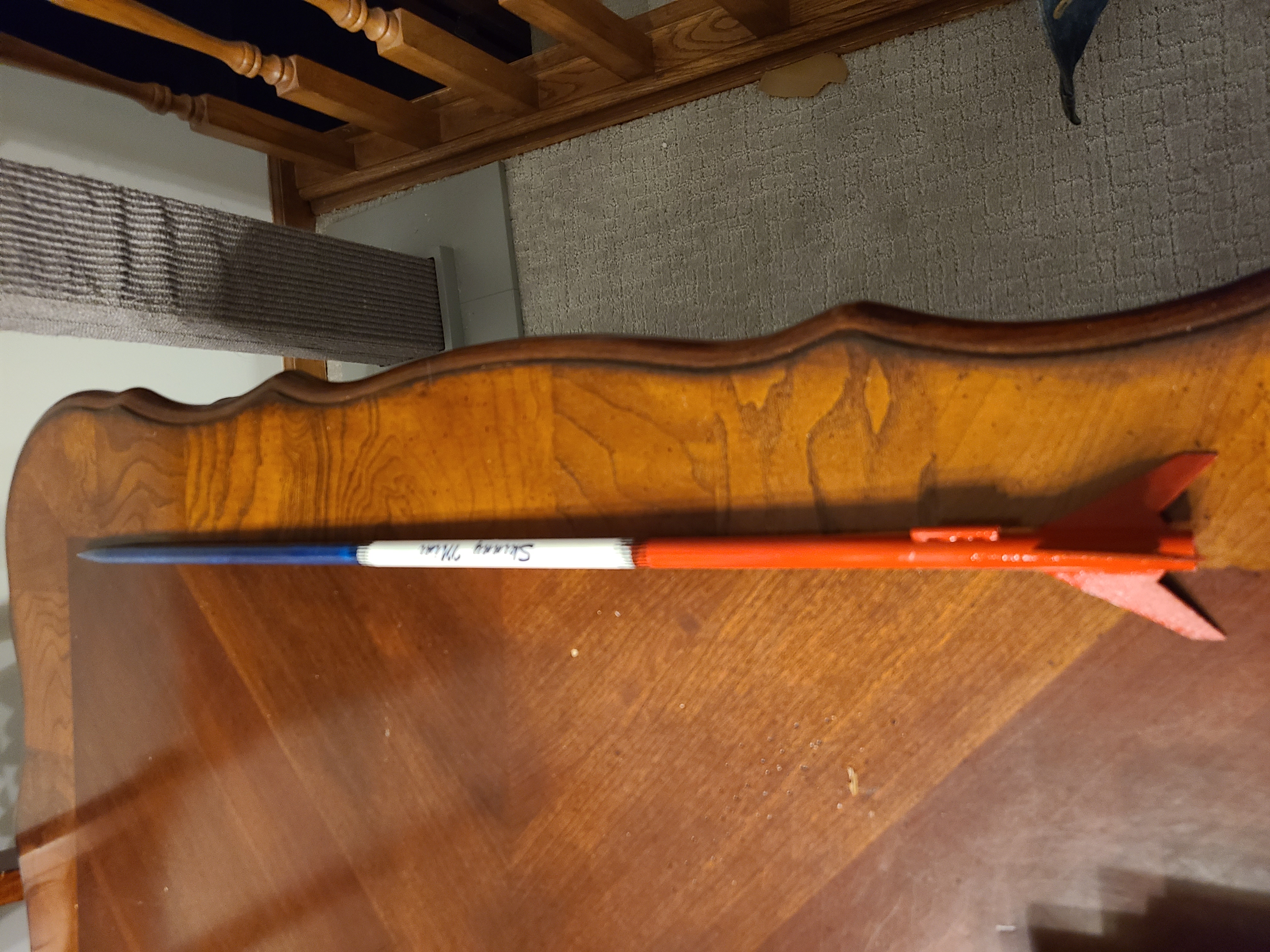 The Skinny Mini was a 'longneck'-style, 13mm, minimum diameter rocket that used streamer recovery. Mine dates back to the late '80's. The parts included: 2 sections of 13mm tubing tube coupler plastic nosecone 3 die cut balsa fins plastic streamer rubber band shock cord launch lug engine block This was a typical skill Level-1 kit. As with other Estes kits, it ...