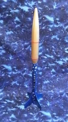 This rocket lost a fin at one point, due to a rough landing. It has since been repaired and it works fine. It's fun to fly.
