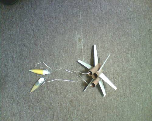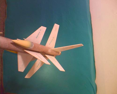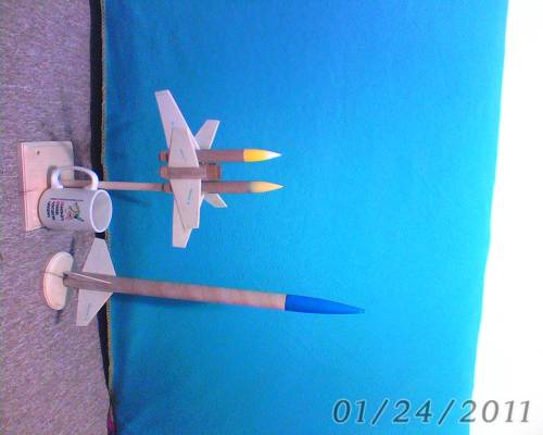 This rocket is a proof of concept prototype for a future mid powered rocket. This one is light enough to fly on C11-0 to a C6-7 with an 18mm to 24mm engine adapter in the second stage. The second stage is only 65g the booster is 90g for a total weight 155g. The booster can tumble recover on a single 24mm boosted stage but with the side boosters used and the additional weight of the motors it will not tumble. To solve this you simply use standard upper stage engines in the side boosters to provide the ejection charge for a parachute and streamer recover. This gives great adaptability to match the size of flying field used. I can only guess at altitudes so far. It has not flown yet and is under construction.