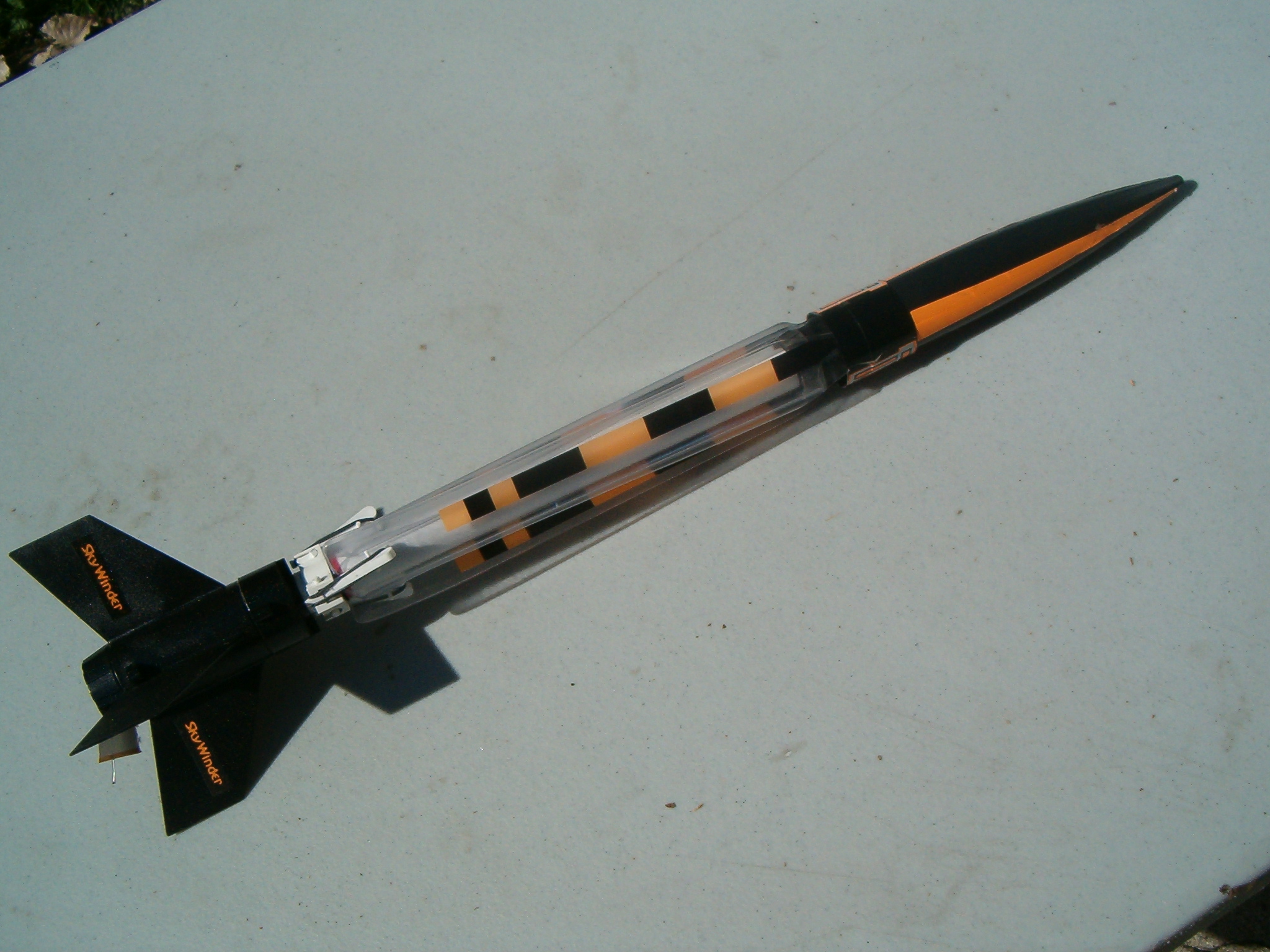 (Reprinted with permission from Spinal's Fun & Hobbies Page) ---------------------------------------------------------------------------- Company: Estes Price: $16.69 Series: E2X Rating: (*)(*)(*)(*)(*) Engines: B4-2, B6-2, C6-3 Nose Cone: Plastic Engine Mount: Quick Release Engine Hook (screw out kind) Fins: Plastic Recovery: ...