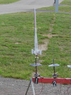 Maiden flight took place with the J.M.R.C. club in Brooklyn, MI at Graves Farm Campground by M.I.S. on Saturday May 30, 2015 at 11:47 am. Engine used was an Estes C6-5 and was launched in between rain showers with a low wind of maybe 4 mph. Rocket flew straight, true and to at least 600' per sim design. Parachute was deployed at apogee and rocket descended at a good speed and landed gently with no damage. Excellent first flight.