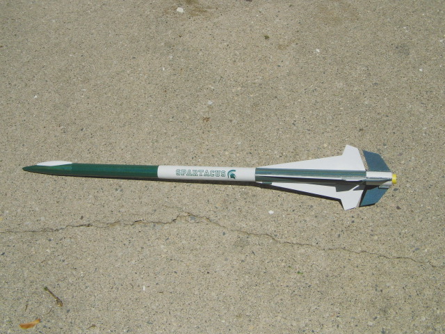 Spartacus started out as Misfit until I decided on the paint job and then the name change was appropriate. Misfit best describes the rocket though as it consists of a bunch of misfit parts that I simply put together.