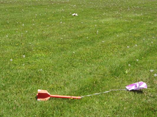 Rocket had good boost off pad with slight weather cocking. Both sections seperated at apoggee with both chutes deploying and coming down and landing close together. No damage to either section.