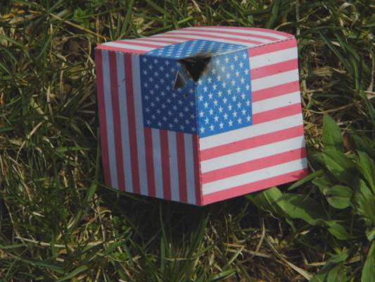 An Art Applewhite creation printed out on heavy card stock material with the American Flag on it.