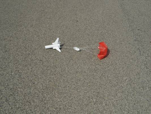 Rocket left the pad and started a slight corkscrew as it climbed into the wind. Parachute was deployed well past apogee. Rocket drifted back and landed on the service road with no damage.