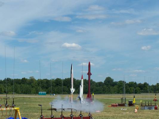 Nice clean fast lift off pad. Rocket flew straight and true to about 450 feet or so. Parachute was just shortly after apogee. Wind caused this rocket to drift quite a ways from launch pad but recovery was soft with no damage to rocket. Next time out will swap out plastic chute for nylon one because even with a large 4" spill hole the lightness of this rocket allows it to drift. Also had a little scorching of the plastic chute due to Estes D12-5 "Shotgun" ejection charge.