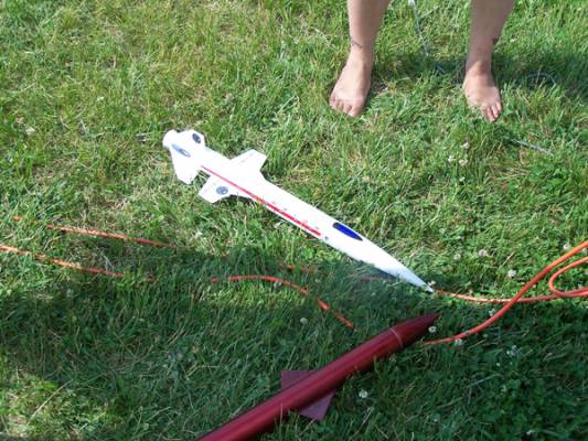 "Colorful peel-and-stick decals that give the simple model an appearance of that of a futuristic business-jet for the rich-and-famous. " is what DynaStar has to say about this rocket.