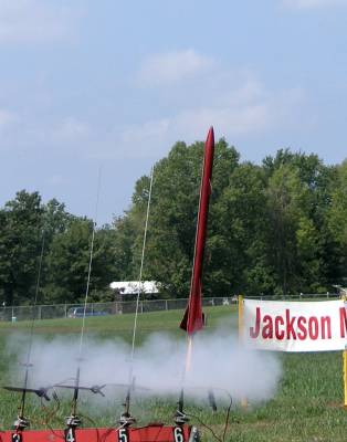 Good boost with parachute deployment just past apogee. Rocket drifted down range for a medium walk. No damage on recovery. This is proving to be the right motor for this rocket. Not a "D" bird as originally designed.