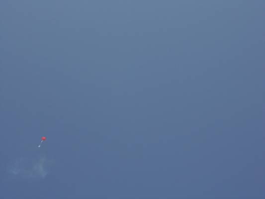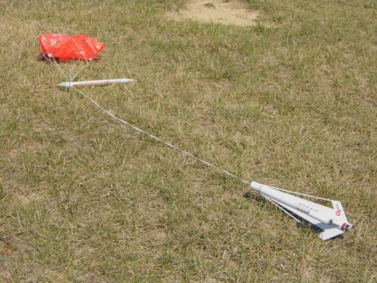 A beautiful flight. Rocket left the pad straight up with great altitude. Parachute at apogee. Gentle drift back down with a moderate walk for recovery. No damage.