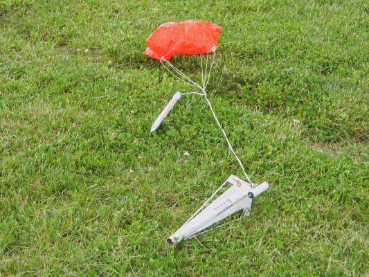 Maiden flight at a club launch so went with a Estes C6-5. Rocket ripped off the pad flying nice and straight and looked like it hit projected altitude. Parachute ejected at apogee and rocket drifted down field for a long walk. Recovery showed no damage. Perfect first flight.