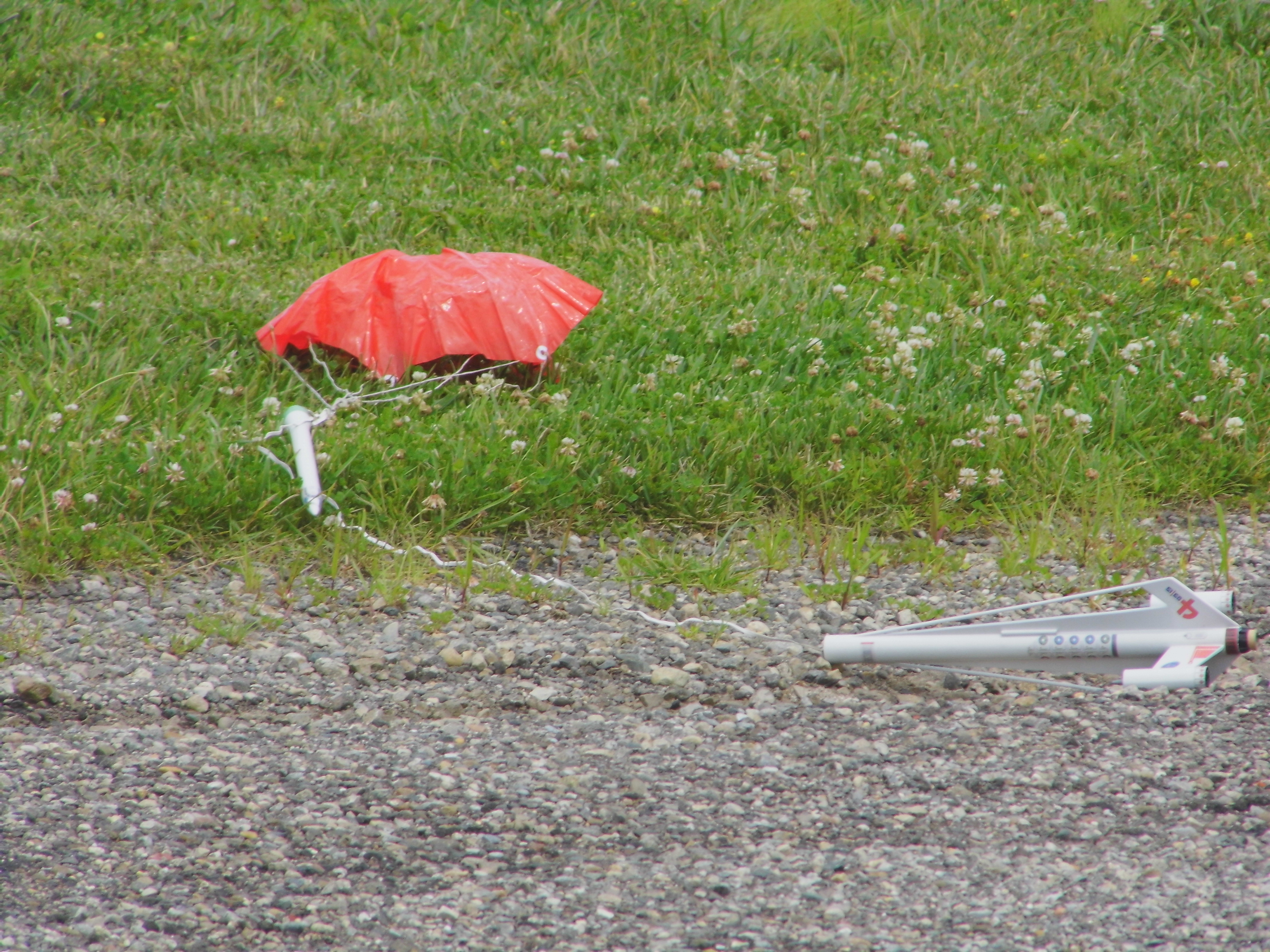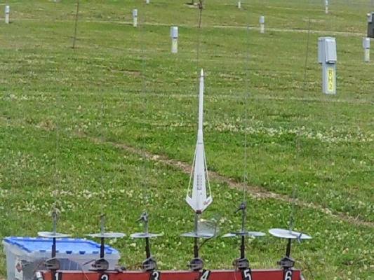 Another perfect flight for this rocket. Straight boost, parachute at apogee, good decent, and no damage on recovery in spite of landing on gravel.