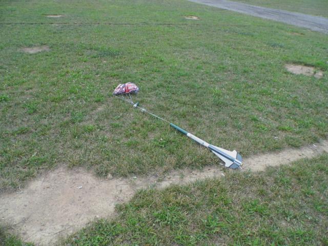 Maiden flight on an Estes D12-5. Beautiful launch with rocket going straight up. Parachute deployed at apogee and drifted back down for a nice landing with no damage. Perfect 1st flight.