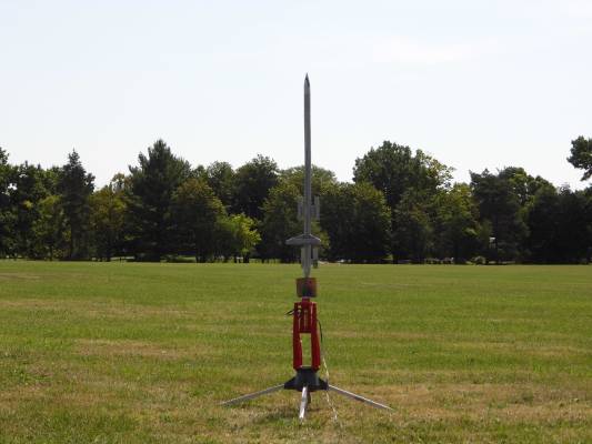 Loaded 18x24mm adapter with a C6-5. Good boost off pad with rocket weather cocking a bit. Parachute deployment way past apogee. Rocket half-way back to ground before chute opened. Rocket recovered with no damage.