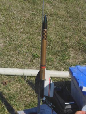 Taser Twin is a two stage rocket with a projected altitude of 2000'. It features tumble and streamer recovery.