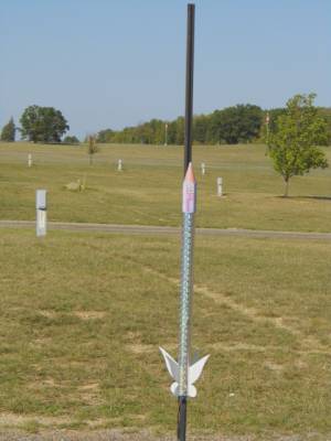Last flight of the day. Took rocket out to HP rails and set her up. Beautiful launch with parachute at apogee. Rocket started drifting across launch field and out into farmers alfalfa field. Lost sight of it as it came down. Spent almost an hour looking for it to no avail. M.I.A.Cry That's two of my favorite rockets I've lost at this campground. (The first was my 3D MD last year)