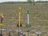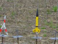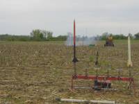 Maiden flight. Beautiful flight straight up. Parachute deployed just past apogee and rocket drifter a short ways down range. No damage on recovery. - B6-4 - Horning's Field #2, Manchester, MI [More]