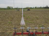Green and white rocket. Second flight for this rocket. Another great flight straight up. Parachute after apogee. Rocket drifted down range a ways with no damage on recovery. - D12-5 - Horning's Field #2, Manchester, MI [More]
