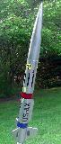 My particular rocket has been modified to use a smaller, 19" Nylon parachute. The stock 32" parachute supplied in the kit is much too large. I also added a small altimeter compartment in the base of the hollow plastic nose cone. The other difference is the addition of a spring clip for the motor (not supplied) and I painted it bright silver instead of the suggested white.