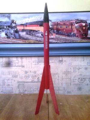And it sprung forth from the Estes Designer Special box. This little rocket really moves on, well, pretty much any 18mm engine. The decal came from a 1:48 scale F-15 model kit that I never quite finished.
