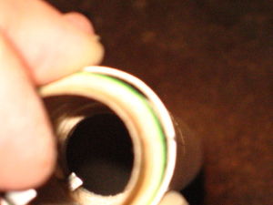 Because of a very loose fit, I tried "building up" the centering rings with glue, but this didn't help. The instructions called for applying glue to the centering rings prior to installing them, but I chose to put epoxy inside the body tube at the appropriate locations. I put epoxy on forward ring location first, installed the motor mount halfway, then put epoxy at the aft ring location.