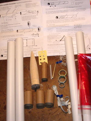 ( Contributed - by Frank Casey - 10/24/07) Brief: I purchased this kit from a rocketry vendor on eBay for short money, however, when I received it I found that two of the tubes were partially damaged--not badly but there was some creasing (3 inches and 11 inches, respectively) along the length of two of the tubes. Modifications: What I decided to do was to modify the rocket ...
