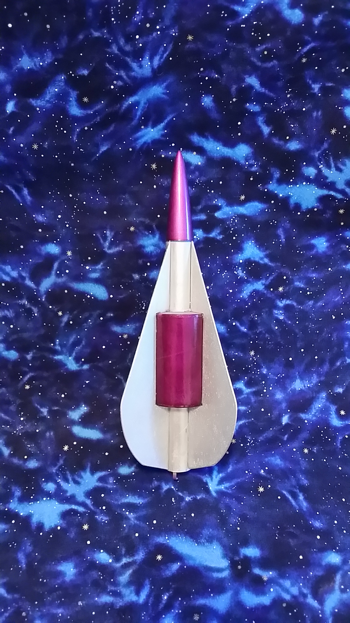 This kit was not too challenging to build. If I were to do it again, I would sand and fill the fins first, although I kind of like the rough texture on my rocket since it makes the sparkly silver paint seem even more reflective.