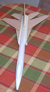 There are many things that I really liked about the design of this rocket and a few that were sub-standard. On the plus side, I'll describe the fin installation. There is a body wrap that gets applied to make the jet intakes. The top of the wrap provides a platform on which to glue the large wings. This provides for an incredible amount of surface area and durability. There are also tabs that overlap the wings and secure them to the body tube. This combination is better than even through the body attachment. The intakes also provide a measure of stability to the rocket in flight. The tail fin is attached similarly to the wings by using two tabs that are first glued to the sides of the fin and then to the body tube.