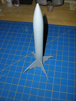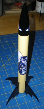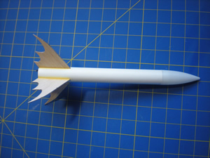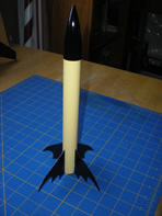 The picture in the package showed a purple rocket with black fins. Because the decal was purple I decided to paint the body tube yellow and the fins and nose cone gloss black.