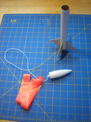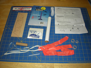 I used an Estes tube marking guide to mark the tube for the four fins. The rest of the construction involved gluing in the motor mount, gluing the fins on, attaching the elastic to the nose cone, taping on the streamer and gluing the launch lug to one of the fin joints.