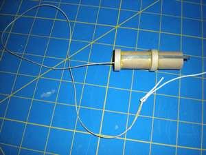 I attached the Kevlar® to the motor mount as shown in the pictures. I then tied the Kevlar® to the round elastic band, trimmed the ends and applied a small amount of Tight Bond II glue to the knot. The round elastic was then attached to the nose cone.Sunward Mini Moondance - Kevlar Cord