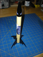 The Sunward Mini Moondance is an easy to build Level 1 rocket kit. It has four bat wing shaped fins and uses streamer recovery. It flies high and straight.