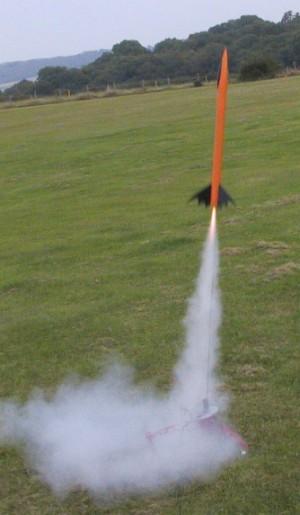 The first flight was on a B6-4 on a day with a very light breeze. The rocket