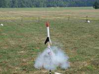 The first flight for my Super Alpha came at NARAM 53 in Lebanon, Ohio. With the big field, I felt like the rocket could handle a "big" C6-5. I figured right. There was a slight breeze, but the flight was dead straight, tipping over slightly just before the ejection charge fired. I had used a the stock chute without a spill hole because of the lack of breeze and size of the field, so the recovery was nice and soft. The rocket actually stuck the landing and stood for a few minutes until a slight breeze came out of nowhere and blew it over. Very cool flight and recovery with no damage. Is there anything more to it?