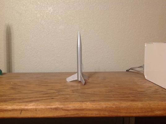 A little tiny rocket with long swept back fins. I decided to round them a little to add personal touch. I painted it silver and decided to name it surfer Jr. as the son of my big Silver Surfer. Absolutely not flying it on C's, A's yes, b's maybe, i fly it on A10-3t with an adapter.