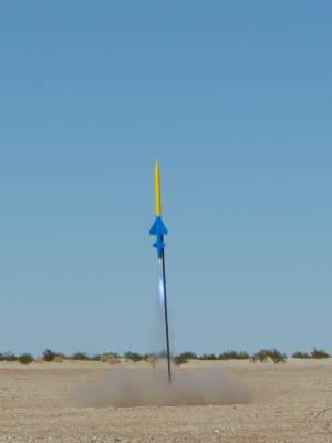 Very fast liftoff, slightly late ejection. Flight duration 122 seconds. Estes altimeter missing when rocket was returned.