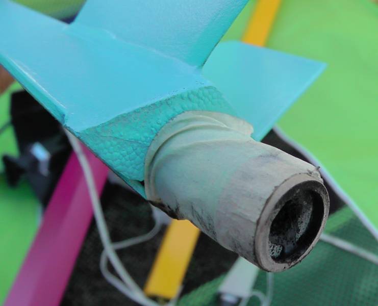 The masking tape is used as Estes instructed to secure the motors. I prefer placing tape on the motor tube in the traditional method because it allows tweaking and testing the friction as the motor is pushed inside the tube, and it also does not leave sticky residue on the tube finish when it is removed. Also, when the tape is burned (and I don't see how it would not be burned), it leaves a very sticky burned scum on the motor tube. (see next photo)