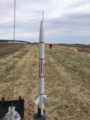 Great leadoff flight. Went out over the high power pads, ejected as it tipped over and raced back toward us. It appeared to land on the good side of the creek, but looks were deceiving,