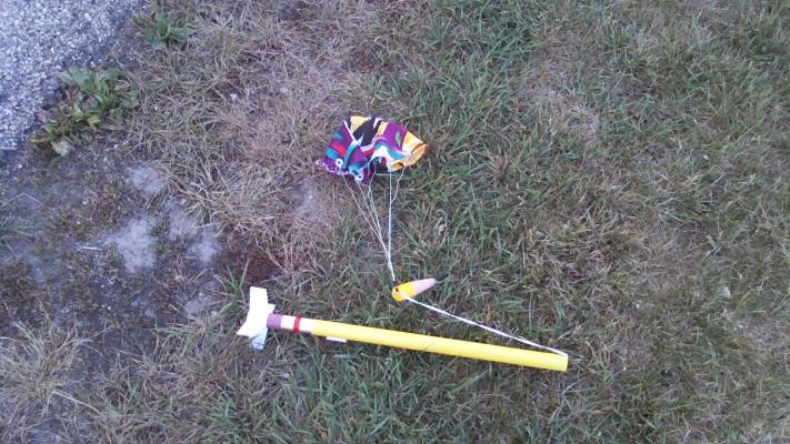 Very fast liftoff and pretty high flight. Visible throughout the flight. Parachute deployed and opened. Rocket drifted down and back towards the launch site. Daniel caught it at 240 degrees, 25 yards from the launch site in the parking lot. No damage. Note: Unable to get used engine out of the rocket. Will need to extract with needlenose pliers.