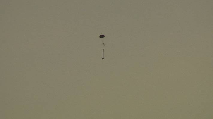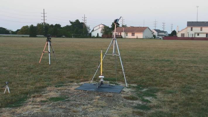 Good flight, very high, but visible throughout flight.  Parachute deployed and opened.  Rocket drifted back from the east and landed 115 yards 330 degrees from the launch site in the parking lot.  Daniel recovered.  No damage.
